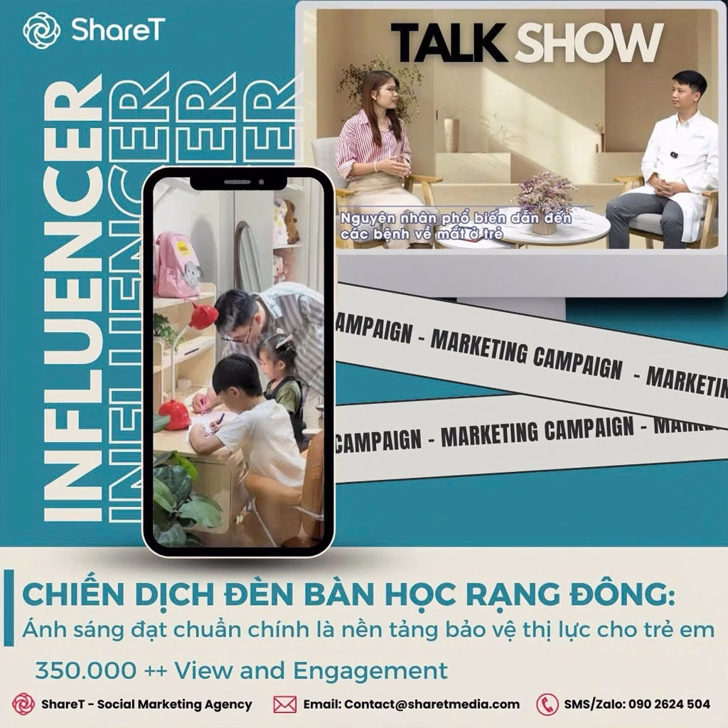 Với thông điệp “Ánh sáng đạt chuẩn – Bảo vệ thị lực cho trẻ em”, ShareT đồng hành cùng Rạng Đông lan tỏa nhận thức về ánh sáng học tập an toàn, đồng thời quảng bá dòng đèn bàn học đạt chuẩn đến phụ huynh.